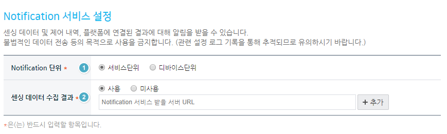 - 서비스 하위의 디바이스에서 센싱 데이터가 수집될 때 마다 그 결과를 등록한 URL로 전송합니다.